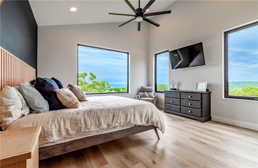 Welcome to this stunning custom-built home on a spacious half-acre lot in the highly sought-after Hyland Park subdivision. Designed for both comfort and style, this one-of-a-kind property offers panoramic views of Fayetteville through expansive picture windows and from a rooftop balcony wired for a hot tub and heaters. Inside, enjoy a custom waterfall island with quartz countertops, marble-look tile, luxury vinyl plank flooring, and double ovens. Thoughtful upgrades include solar panels (covering most of the electric bill), Sonos surround sound, whole-home water filtration, EV charger, tankless water heater, laundry chute, and customizable exterior lighting. The drive-through garage and floating staircase add even more appeal, along with a 500 sq ft unfinished basement. With 3 bedrooms, 3.5 baths, an office, and a large media/game room, this home blends modern design with everyday convenience. A rare opportunity you won’t want to miss!