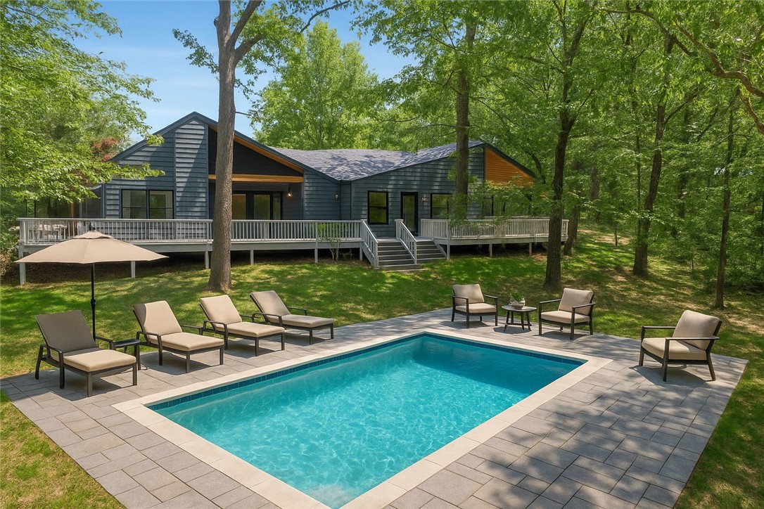 This stunning, fully-remodeled home blends impeccable modern-organic design with thoughtful functionality on 5.24 secluded acres. Every inch has been reimagined, from the updated floor plan, now featuring an added bedroom with en-suite bath and a welcoming new entryway, to the top-to-bottom renovations including new electrical, plumbing, septic system, windows, flooring, cabinetry, countertops, and paint. The kitchen is a showstopper, boasting expansive luxe countertops, custom cabinetry, and a hidden butler’s pantry to keep your workspace pristine. Step onto the oversized 450 sq ft stamped concrete patio and start dreaming…there's even a pool rendering off the back deck to spark your imagination. A whole-house generator adds peace of mind, while a new mini-split HVAC keeps the nearly 300 sq ft bonus space behind the garage, ideal for a gym or office, comfortable year-round.This is more than your basic remodel…it’s unforgettable.