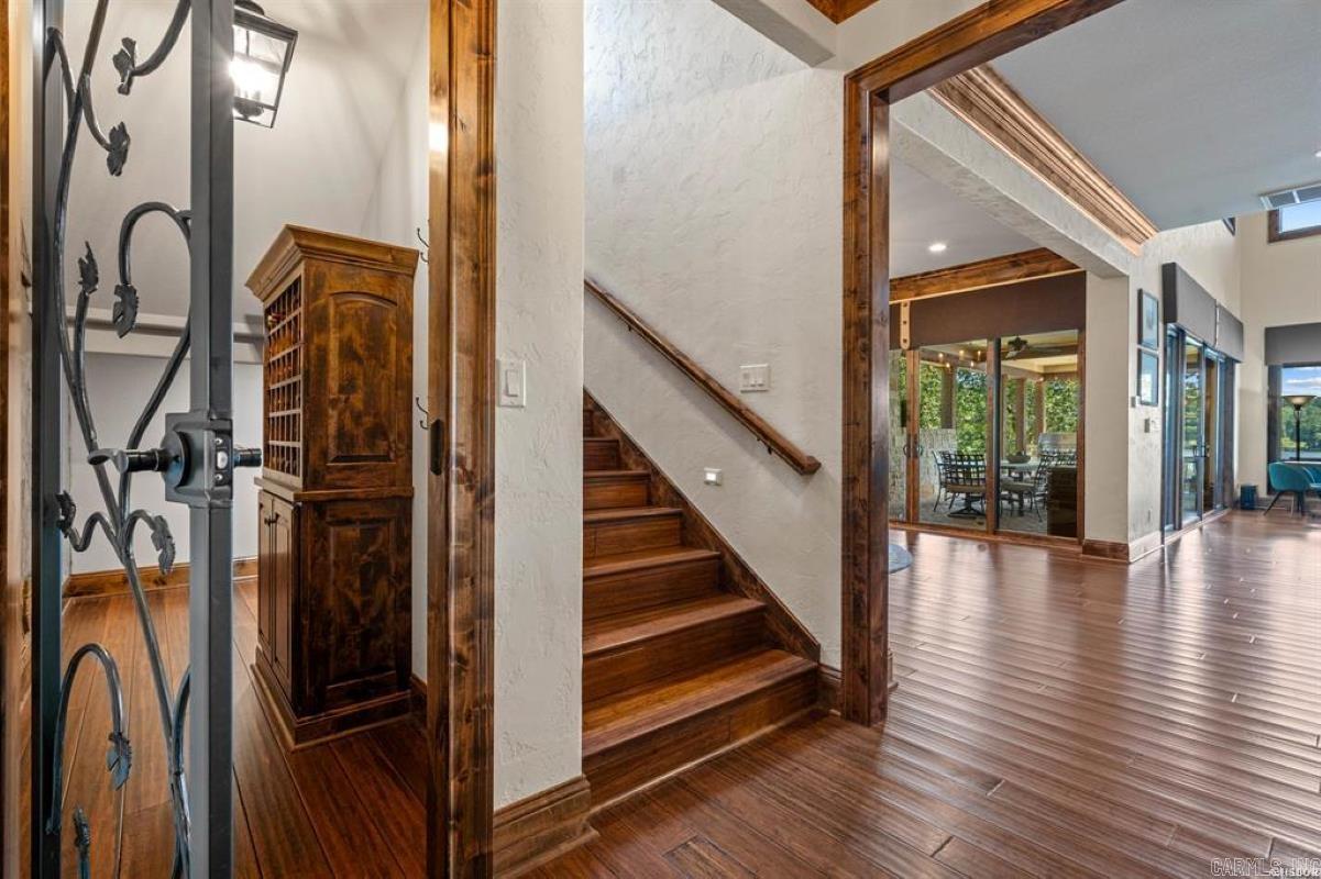 Situated on a majestic seven-acre estate, this extraordinary one-of-a-kind retreat boasts unparalleled luxury and breathtaking views of Lake Hamilton's serene waters. This custom-built masterpiece, completed in 2016, spans over 8,100 square feet and features six bedrooms, five bathrooms, and exquisite finishes. The open floor plan is perfect for grand gatherings, with seamless transitions between the gourmet kitchen, dining area, and lavish living room. Entertainment spaces are in abundance, including a private theater, outdoor kitchens, bunk bed room, and a sparkling pool surrounded by panoramic lake views. Enjoy direct access to the lake with almost 500' of waterfront with four private boat docks, perfect for boating, fishing, or simply soaking up the sun. Luxury details are evident throughout, from designer lighting to high-end appliances, fine finishes, and tasteful furnishings. The property also features a detached garage, ideal for car enthusiasts or hobbyists, offering the potential for conversion into a second dwelling. Secure boardwalks and stunning waterfall features enhance the estate's natural beauty, creating a tranquil oasis. A treasure of luxury lakefront living!