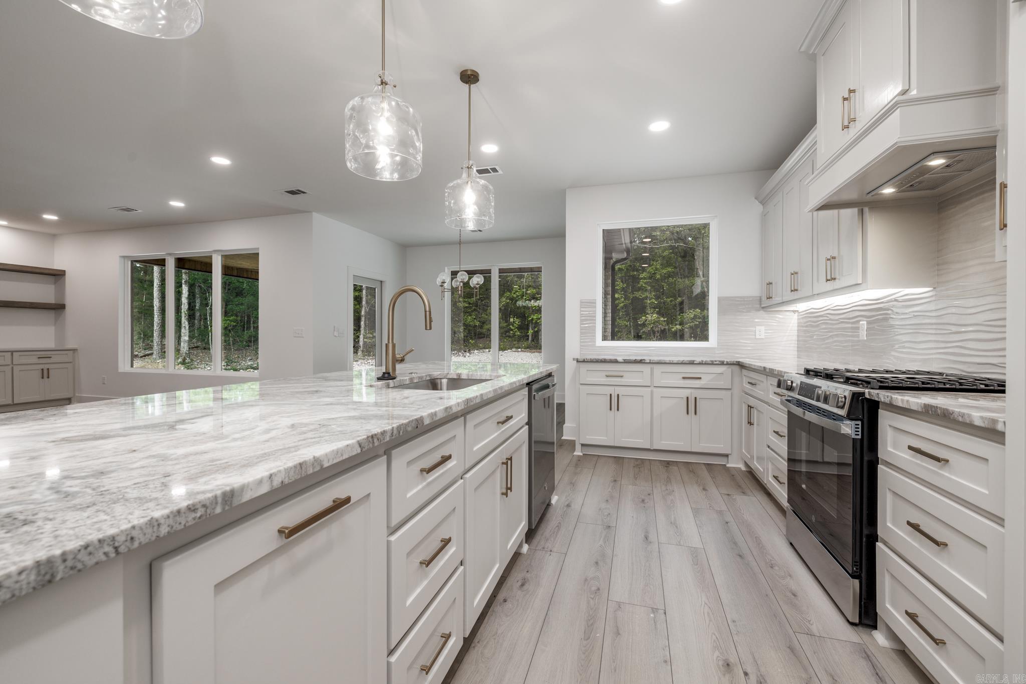 Photos are of a similar home.   This home photos coming soon. You will find impressive upgrades in this sure to please home. From covered front porch to the covered patio expect nothing but excellence. Designer light fixtures and hardware throughout. In the kitchen you will enjoy upgraded granite counters and added cabinetry including a well designed pantry with two outlets. For the chef in the family there is a sought after gas stove with a griddle. Note the oversized island perfect for entertaining. Great room features a stunning gas fireplace with surrounding  shelving. The spacious primary suite has tray ceiling, oversized counter and large walk in shower, more than ample closet, Wifi transmitter above cabinetry in laundry for your convenience. Hot Springs Village is a 26,000-acre gated community with 11 lakes, 9 golf courses, white sand beach, hiking trails, pickle ball, fitness center, indoor and outdoor pool, tennis and SO MUCH MORE. One time POA buy-in fee $2000 due at closing. Taxes are on vacant land